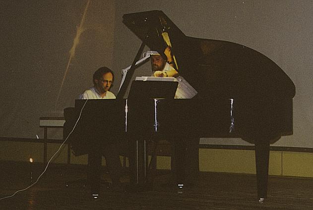 Lauri Väinmaa musitseerimas. Teda abistab Urmas Sisask. |