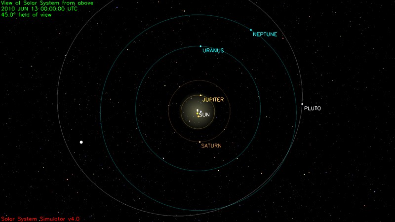 Pildid tehtud NASA päikesesüsteemi simulaatoriga. Taevas paistab asi sellisena: