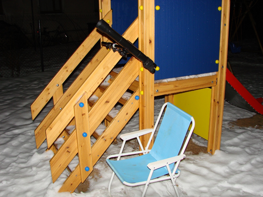Et siis kolmjala asemel on pitskruviga üksjalg. Täpne mark on Velbon HC-25/28 hinnaga 32€ ja selle otsas videopea Velbon FHD-52Q hinnaga 35€. Soetasin selle komplekti algselt pidude videofilmimiseks, kus lapsed võivad tavalise kolmjala pikali joosta või ka ülemeelikus tujus täiskasvanud selle otsa komistada. Aga see on ka Galileoskoobi ja pikksilmadega vaatlemiseks päris hea. Põhiline on see, et vaadelda saab mugavamates poosides(midagi pole jalus) ja stabiilsuse-hinna-kaalu suhe on ülihea.