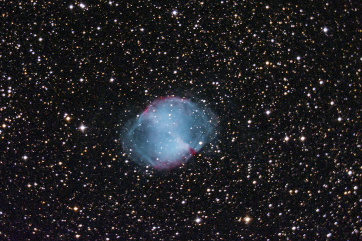 Ööl vastu reedet sai vaatamata vahelduvale pilvisusele pildistatud M27, Dumbbell nebula-t. Tehtud sai 150 kaadrit Nikon D5200 aparaadiga (säri 30s ja ISO 1600) optilise juhtimiseta ja ilma wedge-ita. Nendest jäi sõelale 21 pilvevaba ja liikumiseta pilti, mis sai Maxim DL-iga summeeritud.